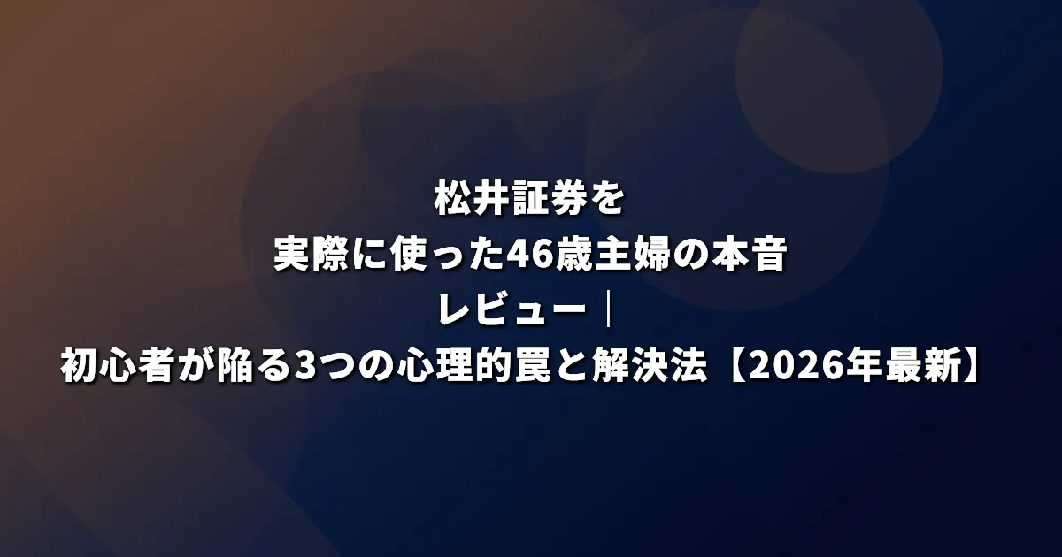 松井証券を実際に使った46歳主婦の本音レビュー|初心者が陥る3つの心理的罠と解決法【2026年最新】