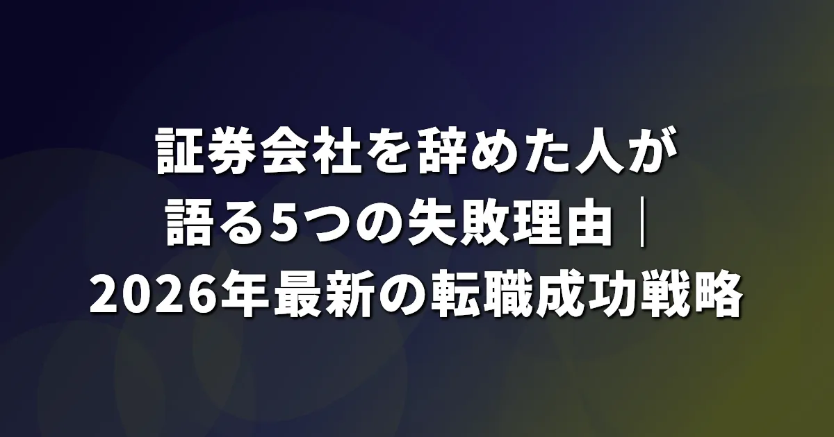 この記事では、証券会社選びで失敗する理由と、実際に辞めた人たちの体験談から学ぶ転職成功戦略について解説します。