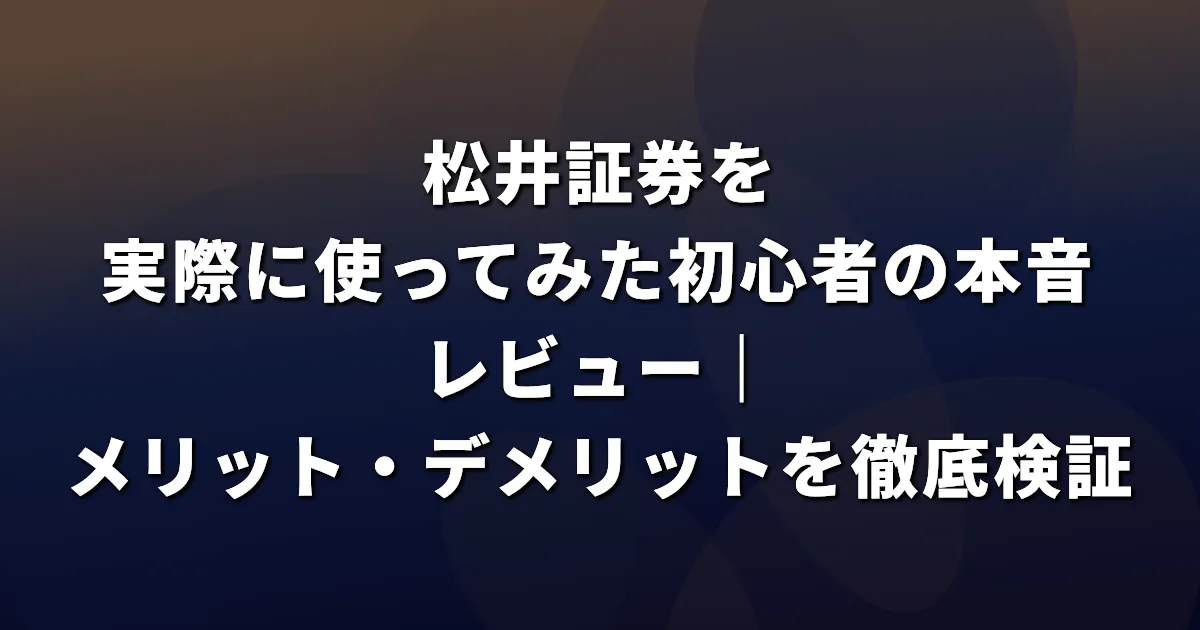この記事では、松井証券を実際に使ってみた初心者の体験談とともに、メリット・デメリットを詳しく解説します。