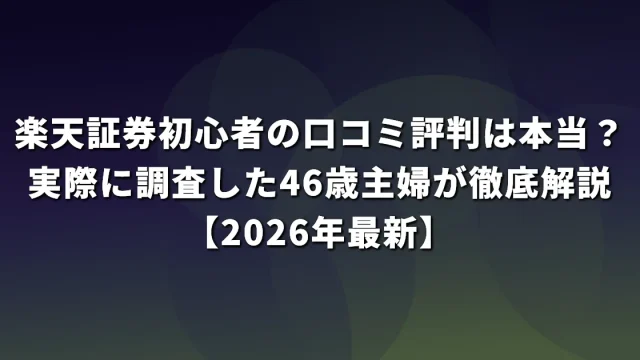 投資 楽天証券初心者の口コミ評判は本当?実際に調査した46歳主婦が徹底解説【2026年最新】