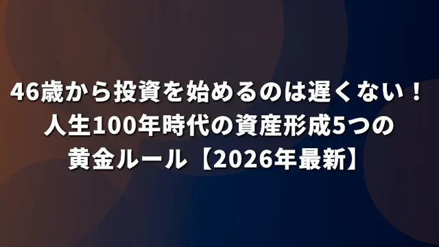 46歳から投資を始めるのは遅くない!人生100年時代の資産形成5つの黄金ルール【2026年最新】