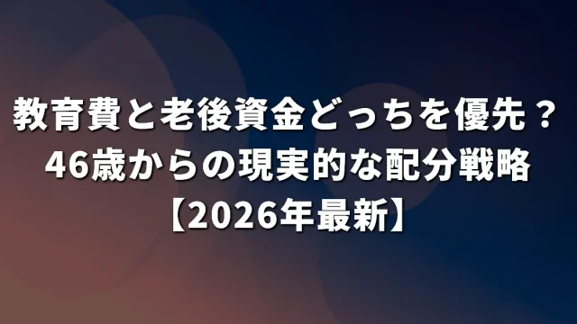 投資 教育費と老後資金どっちを優先?46歳からの現実的な配分戦略【2026年最新】 教育費と老後資金の優先順位に悩む46歳主婦が知るべき現実的な配分戦略。限られた予算での具体的な月額配分モデルと代替手段を使った賢い資金計画を解説。 2026.03.27 投資